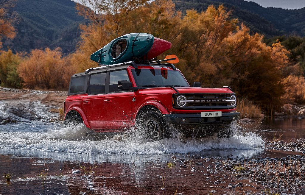Bronco kommer også med muligheten for å skifte mellom tohjulsdrift og firehjulsdrift manuelt mens du kjører, eller du kan la systemet selv velge hva som er best avhengig av forholdene. Mens differensiallås bak er standard, kan det også tilbys foran.
