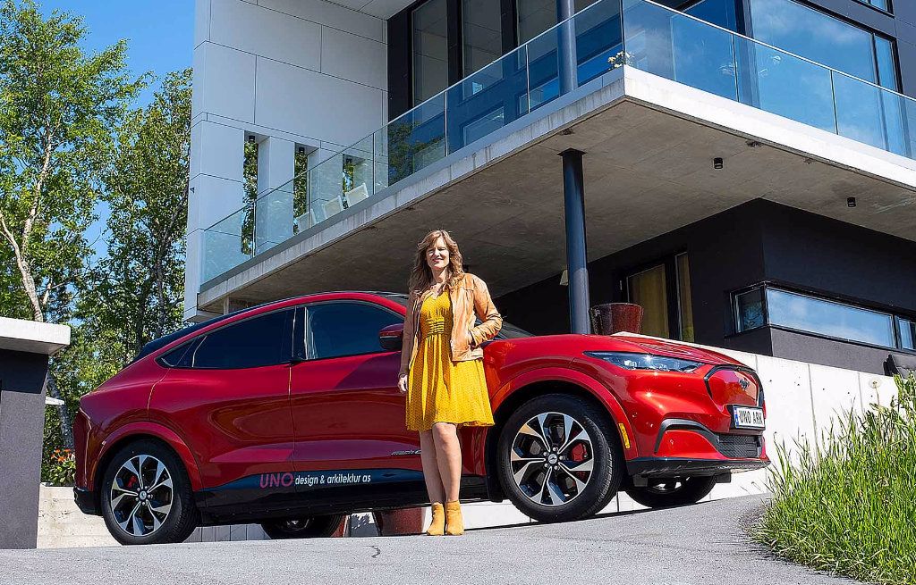 Hun er daglig leder i arkitektfirmaet UNO design & arkitektur i Bodø, og har designet flere av de mest iøynefallende arkitektoniske signalbyggene i byen. I fjor fikk hun sin nye sin nye Mustang Mach First Edition med AWD, 351 HK og opptil 540 km rekkevidde i fargen Rapid Red. Det var kjærlighet ved første blikk.