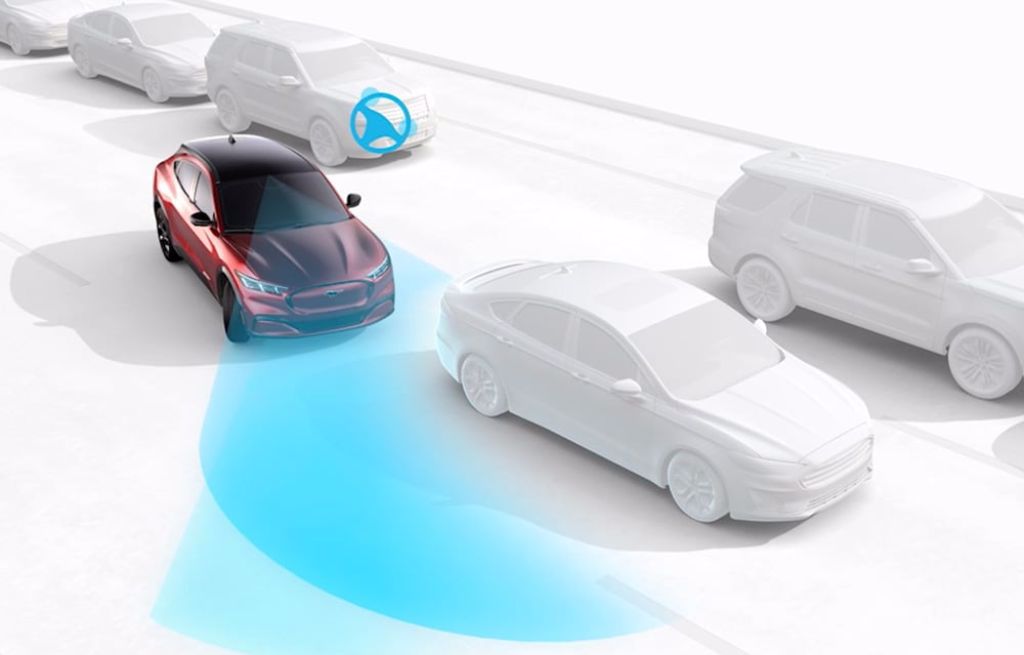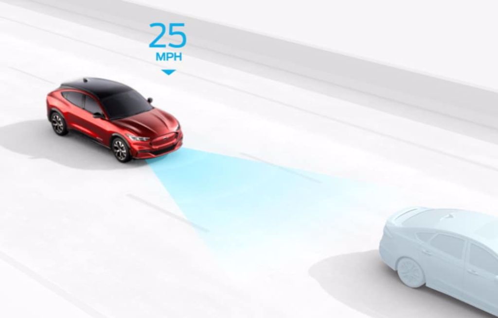 Som en del av det mer omfattende systemet for kollisjonsforebygging, inkluderer Mustang Mach-E teknologi for unnvikende styring†† for å hjelpe deg med å unngå hindre på en trygg måte.