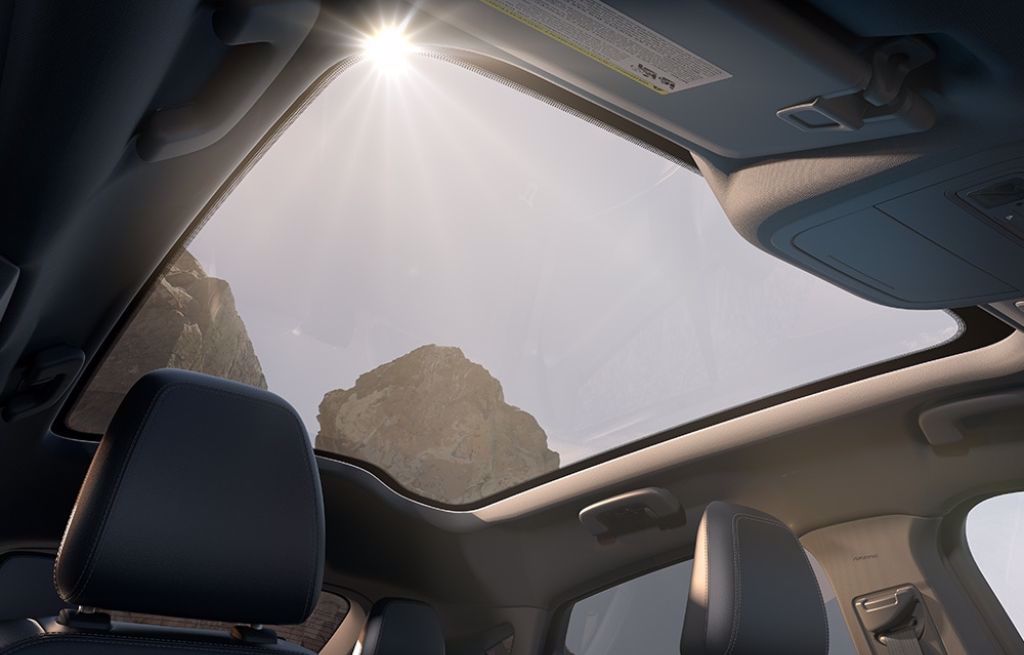 Slipp lyset inn med et valgfritt panoramatak. Et spesialbelegg hjelper interiøret med å holde seg svalere om sommeren.*